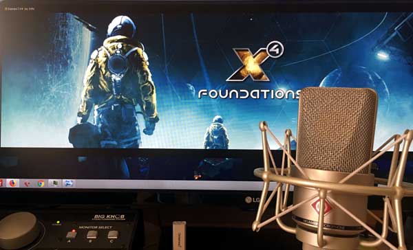 Nach dem ersten Blick auf den Sprechertext vor mir muss ich erst mal gähnen. Dann seufzen. Dann muss ich lachen - das heißt nein: erst kichern, dann lachen, dann gackern. Und schließlich: jubeln - zunächst verhalten, dann lauthals! Kurz: ich durchlebe in kürzester Zeit die halbe Bandbreite menschlicher Emotionen. Nicht etwa, weil das Skript langweilig, super romantisch oder zum bersten komisch ist - sondern weil es genau das von mir verlangt! Nämlich für die Sprachaufnahmen des neuen "X4-Foundation" Adventure von Egosoft.